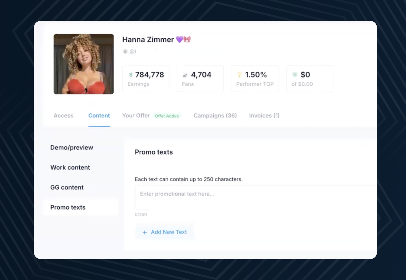 - Write your promo texts carefully and avoid copying them from other models. This helps you stand out and show your unique style.