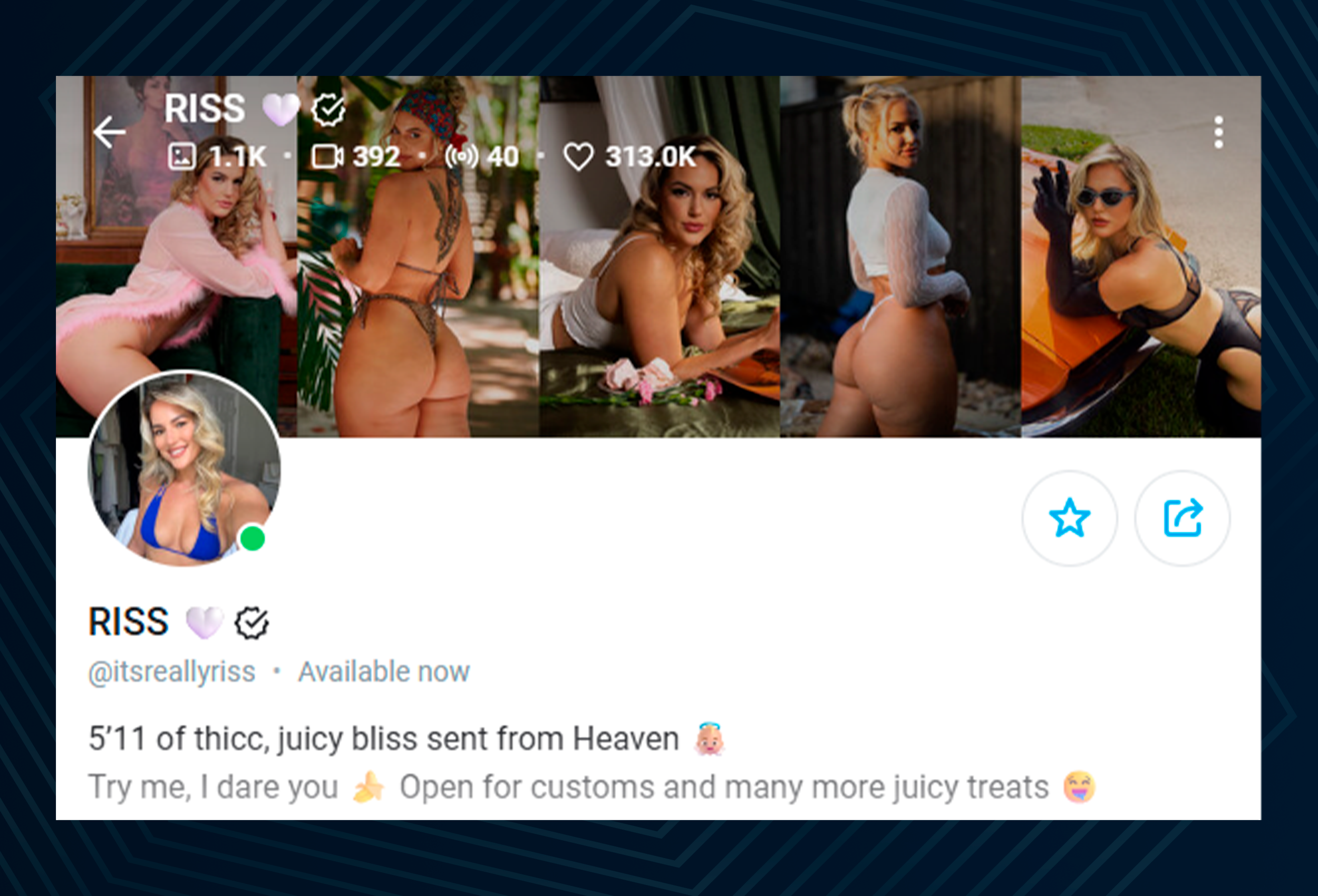 Provide accurate information about when you post, what type of content you post and what other services you offer. Indicate whether you reply to messages yourself or provide them with customised content.