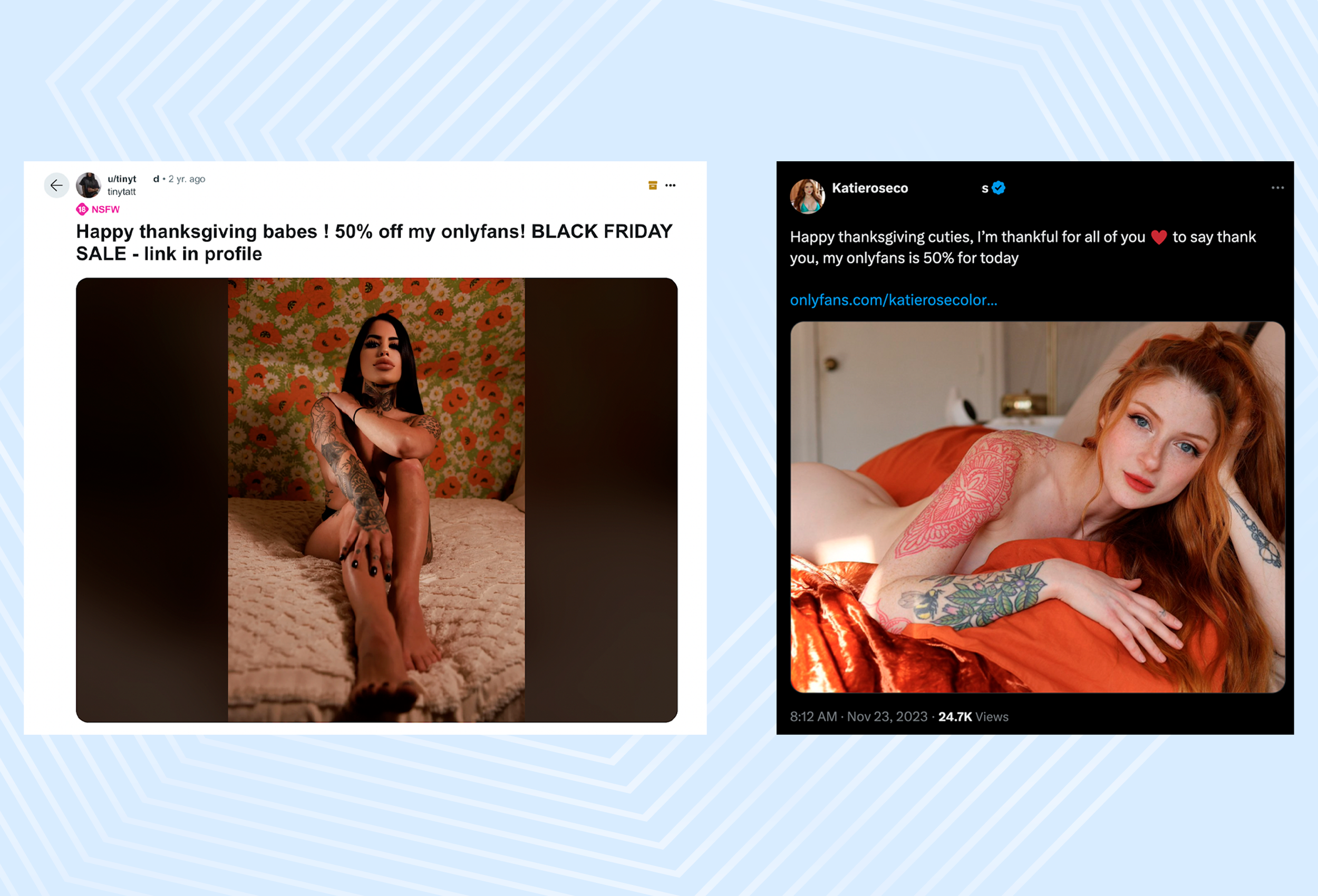 Twitter is more open to adult content, and there is a large community of OnlyFans creators where you can network with other creators and promote your work.
