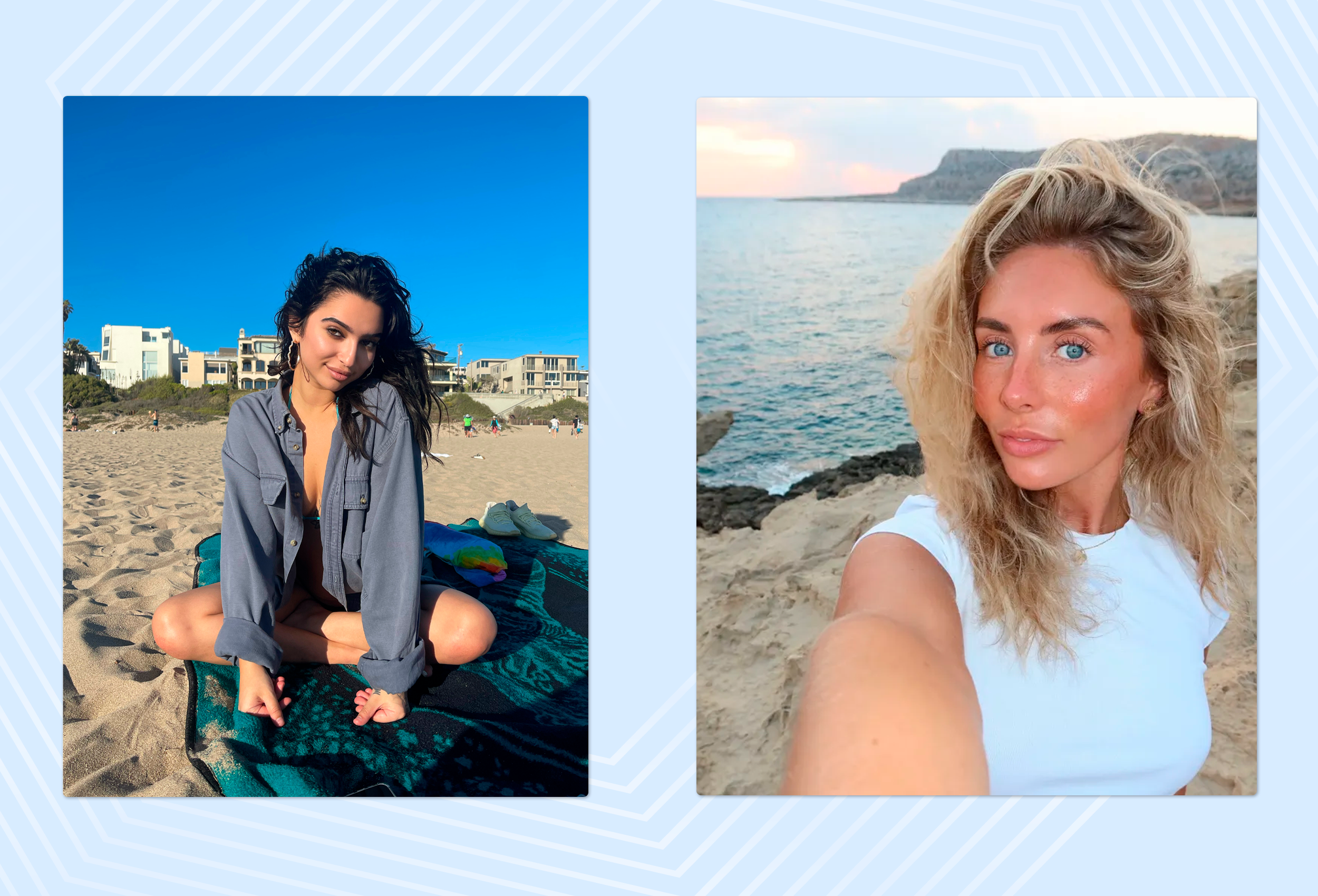 The lighting at the beach is magical, particularly at sunrise or sunset (the so-called golden hour). It will absolutely make your skin look incredible. You can enjoy the waves or simply relax in a towel by building a sand castle.