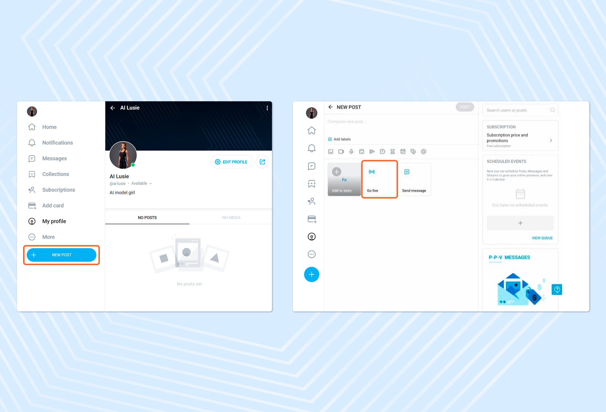 Once you are in your OnlyFans account, go to the Go Live option. On the phone, it normally appears in the main menu. On the desktop, it can be found through your Creator Dashboard.
