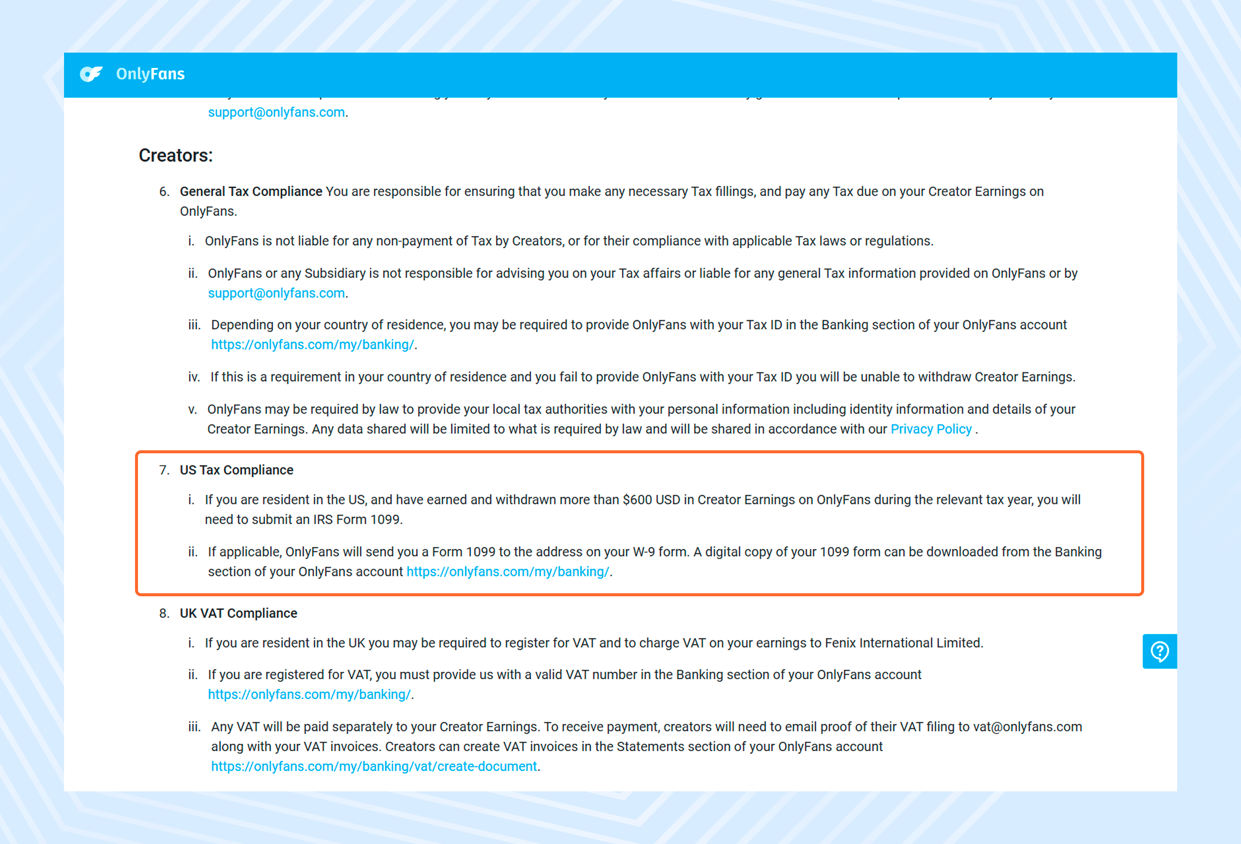 It's best to talk to a tax professional if you make money on OnlyFans from all over the world because international tax rules are hard to understand.