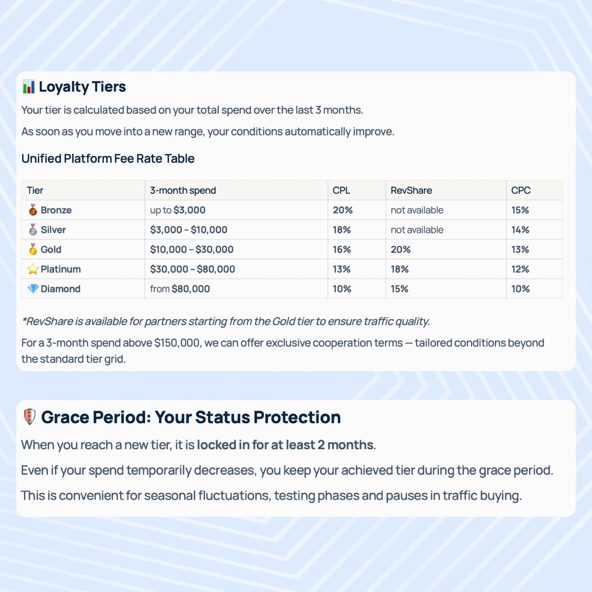Lowering the commission rate is now easier. We look at total spending over three months instead of a single month, which is how it worked before. More details can be found here.