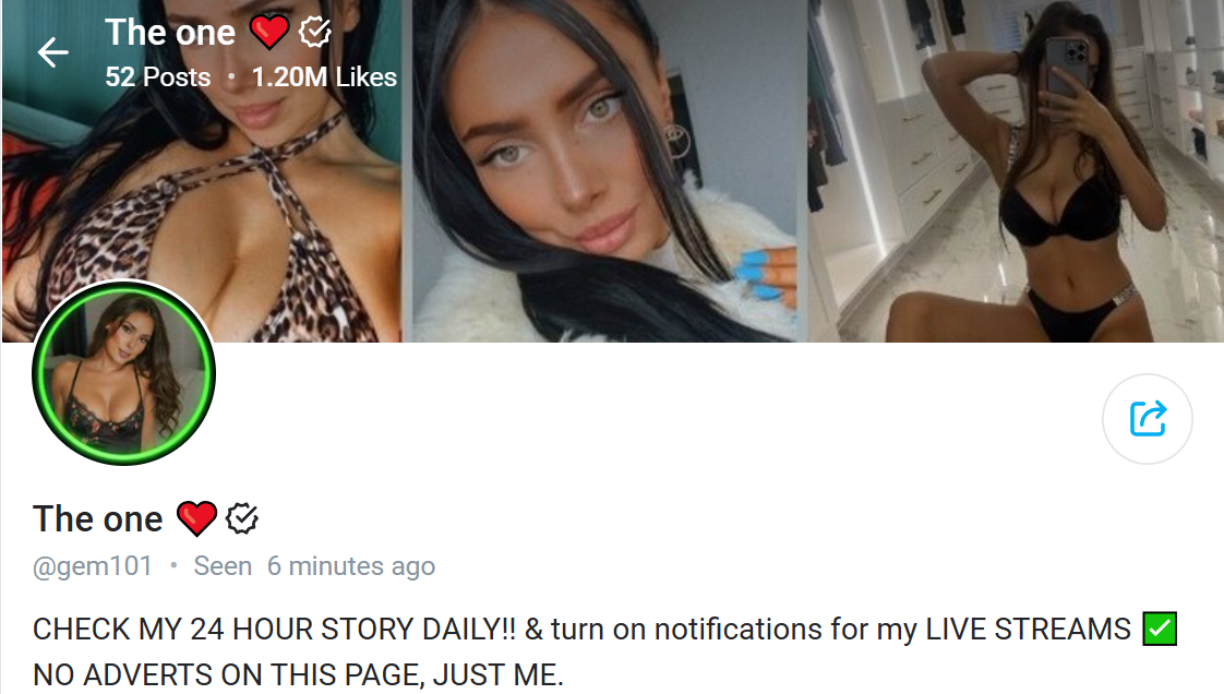 - Metrics: 3.5 million IG; adult/lifestyle, personal updates.