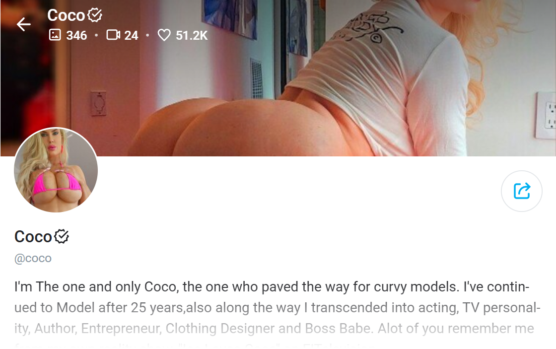 Coco Austin is 46 years old, charges $20 per month, has undisclosed subscriber numbers, earns an estimated $9 million per month or $300,000 per day at peak, focuses on glamour and modeling content, and has strong activity since joining in 2023.Coco Austin leverages her reality TV fame and modeling background to sustain a high-earning OnlyFans page. Married to Ice-T, she gained traction quickly after launching in 2023, drawing from her 3 million Instagram followers.