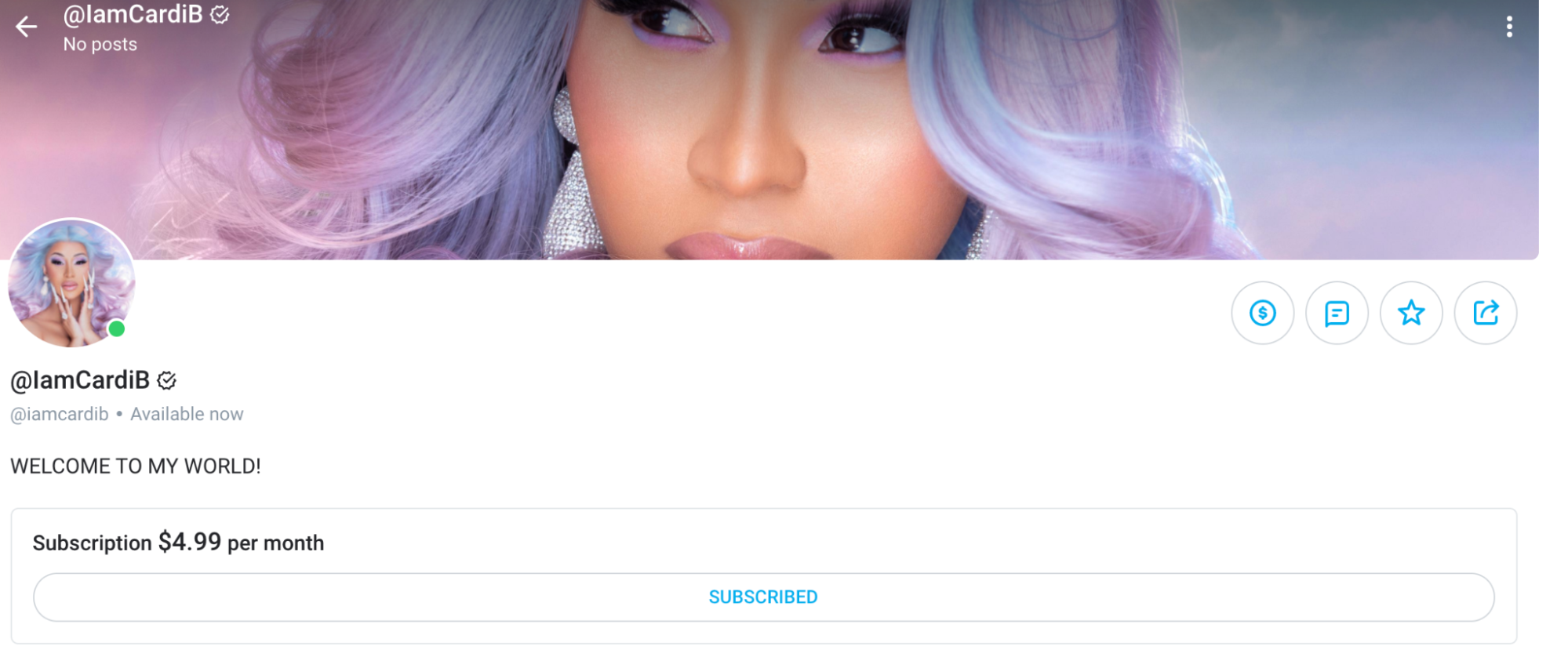 Cardi B is 33 years old, charges $4.99 per month, has 4.5 million subscribers, earns an estimated $9.5 million per month, shares behind-the-scenes and intimate personal content, and remains active for fan engagement.As one of the world's most recognized rappers, Cardi B used her massive social media reach to explode on OnlyFans. Her low subscription fee maximizes accessibility, converting fans from into subscribers.