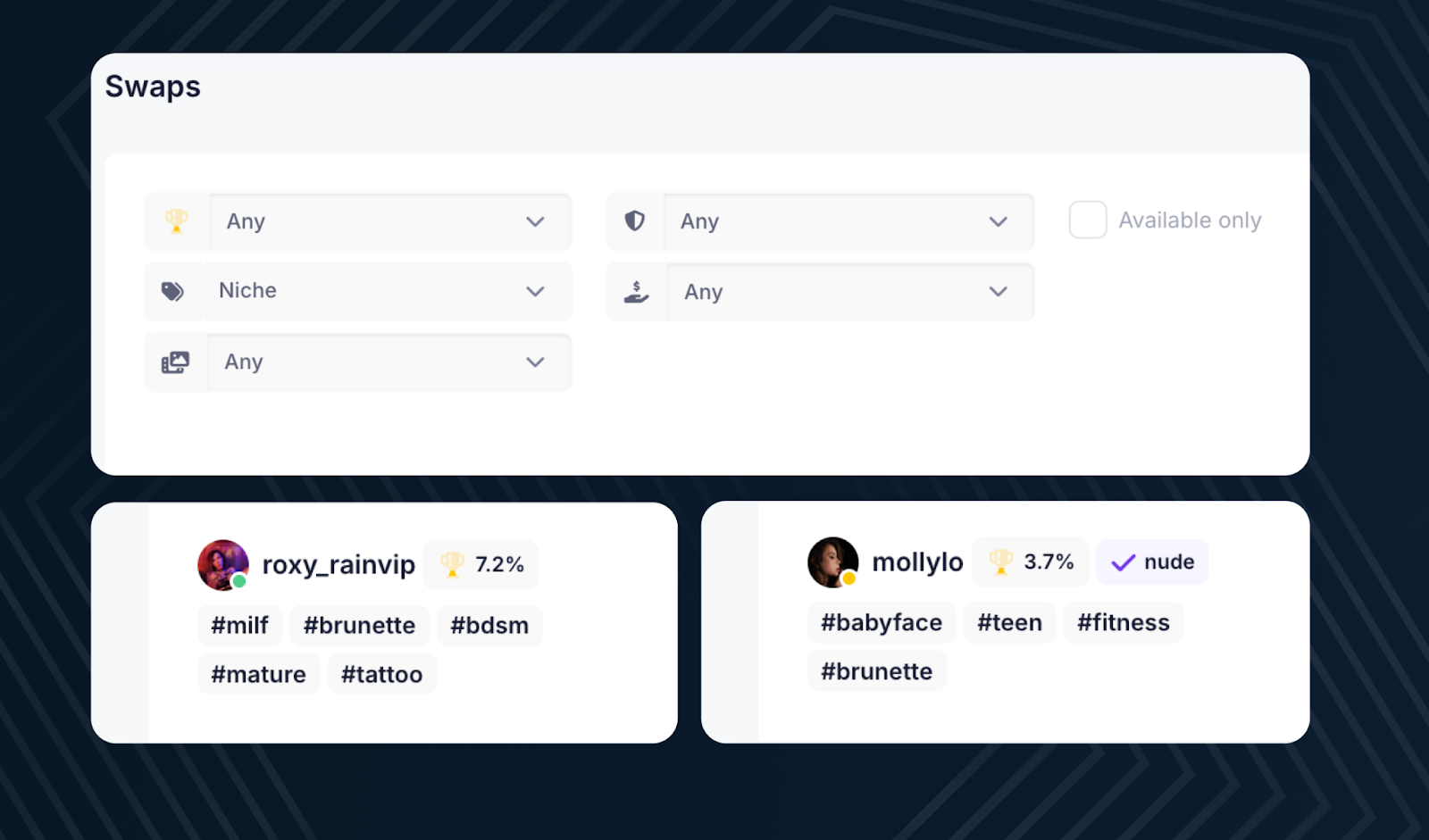 Эти проблемы может полностью решить CPA-платформа OnlyTraffic, через которую модели могут находить партнеров для GG Swaps, оценивать качество трафика и безопасно проводить обмен аудиторией.