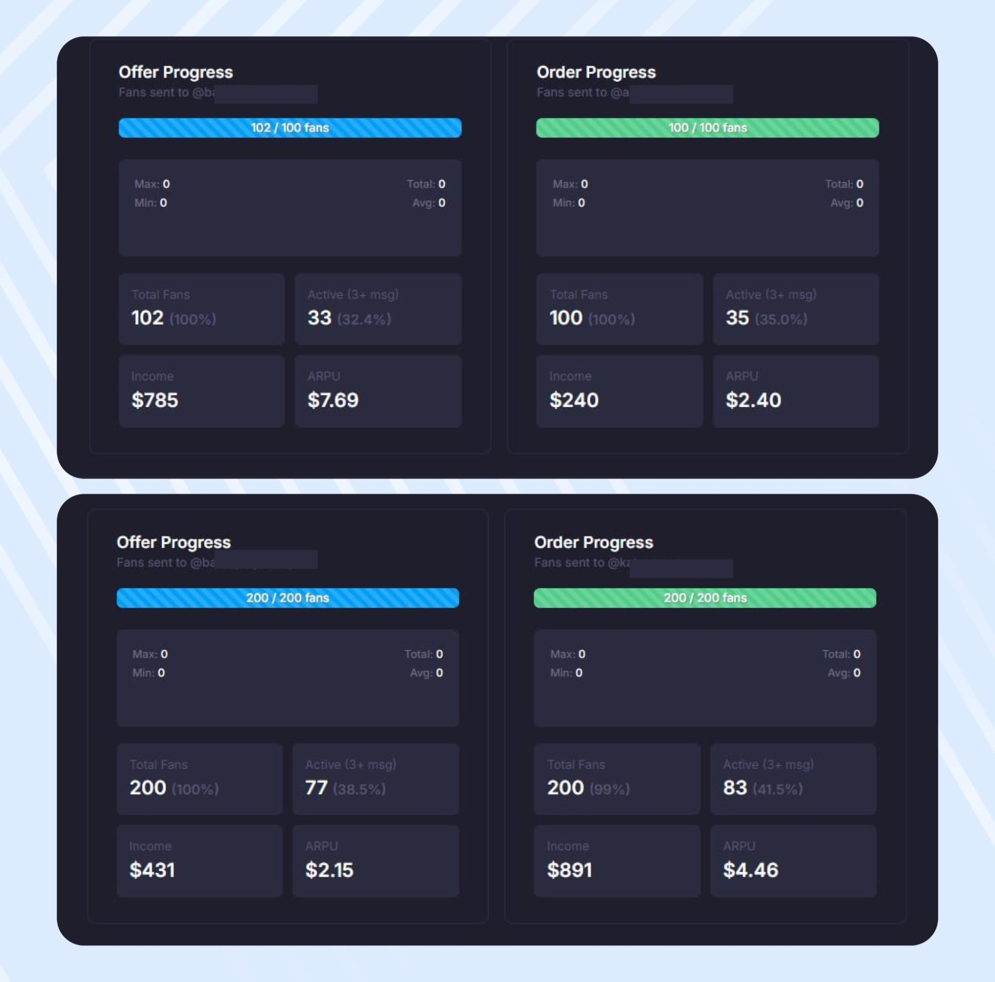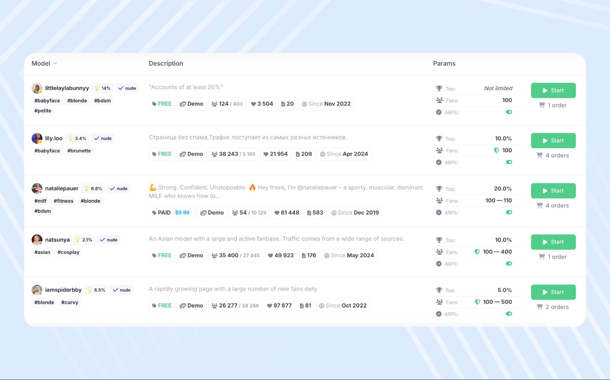 Раньше мы делали свапы только между моделями из нашего же агентства — так было проще получить предсказуемый результат. Мы пробовали обмениваться аудиторией с другими моделями, но это сложно: нужно найти похожую по внешности модель, подобрать контент, договориться на дату и количество фанов, а затем регулярно сверять статистику. Но даже, пройдя через все это, нельзя быть уверенным, что в итоге мы получим качественную аудиторию. Поэтому, мы перешли на OnlyTraffic, чтобы удобно делать все это с моделями внутри платформы.