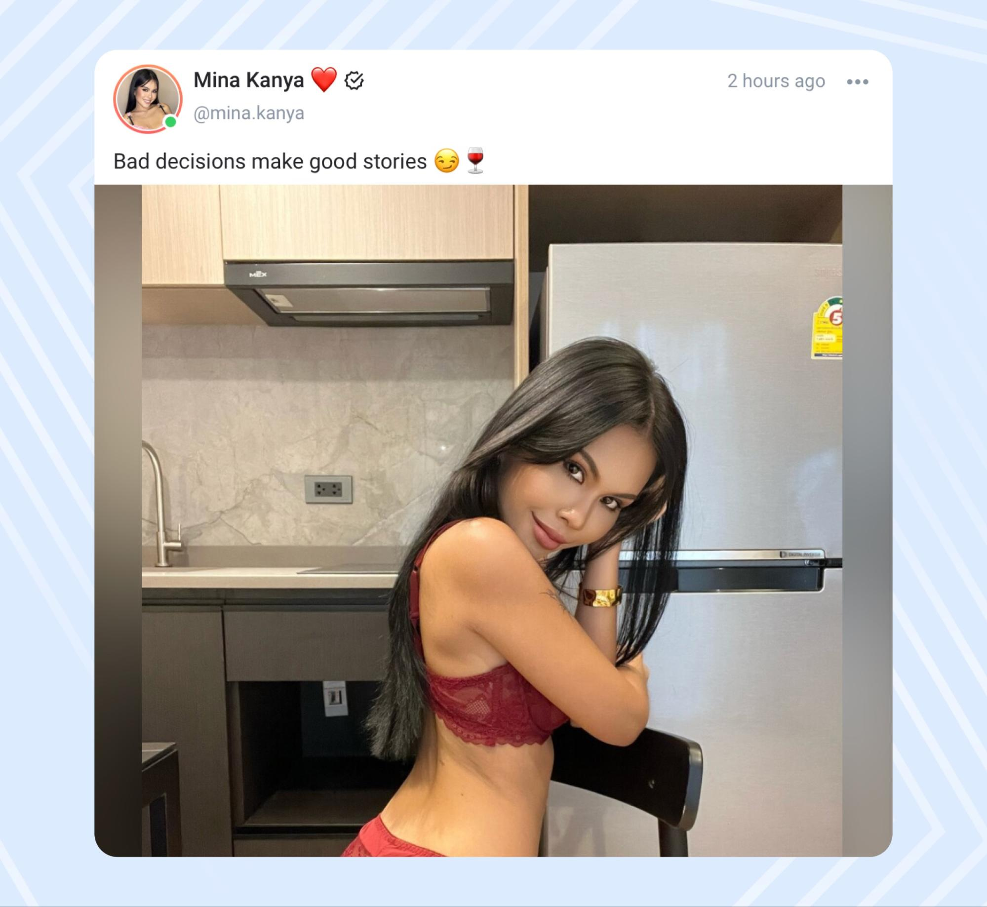 Следите за качеством — фото и видео должны быть не только четкими, но и показывать ваши лучшие стороны. Для этого необходимо найти правильные ракурсы, выставить свет и работать с фоторедакторами. Так фанаты увидят, что модель подходит к созданию контента с душой, и это удерживает их оставаться подписчиком долгие годы.