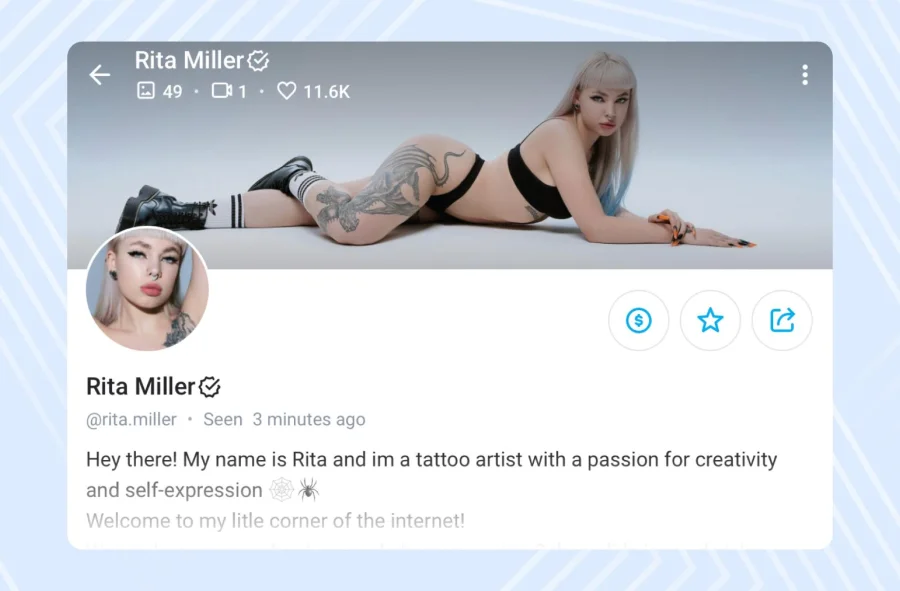 Загрузите четкое, высококачественное изображение профиля, которое отражает вашу нишу. Помните, что на фото профиля не должно быть обнаженного тела. Для баннера на странице используйте яркое изображение или коллаж, демонстрирующий, что вы предлагаете
