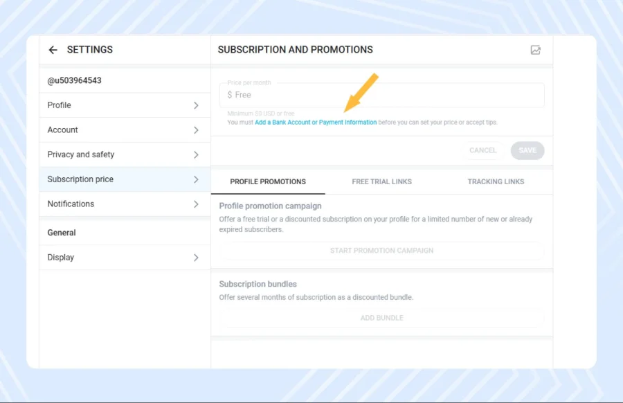При запуске страницы решите, будет ли она платной или бесплатной. Бесплатный аккаунт позволяет людям подписываться без оплаты — это помогает быстро набрать аудиторию, и зарабатывать за счет продажи PPV-контента и чаевых. Главный минус бесплатной модели — подписчики реже тратят деньги, поэтому важно умело «продавать» им эксклюзивный платный контент.