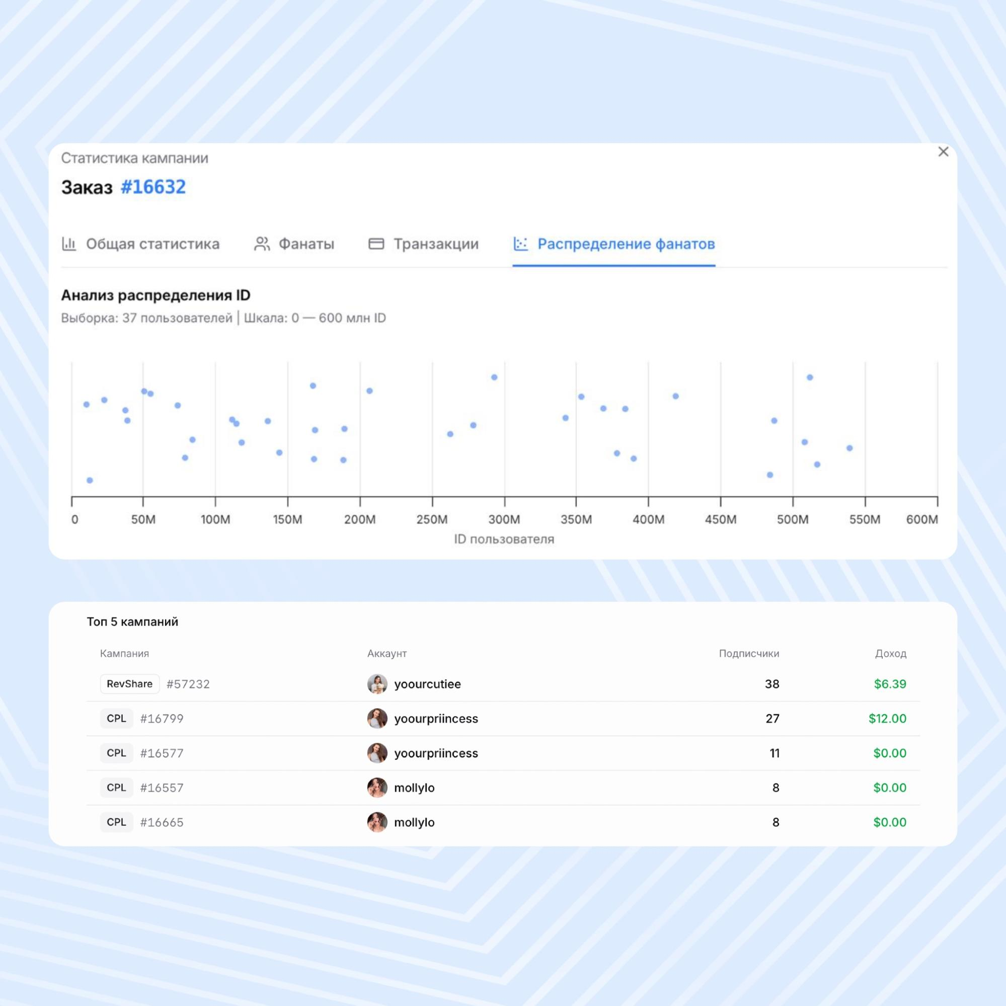 Расширенная статистика по кампаниям в клиентском кабинете и анализ распределения фанатов