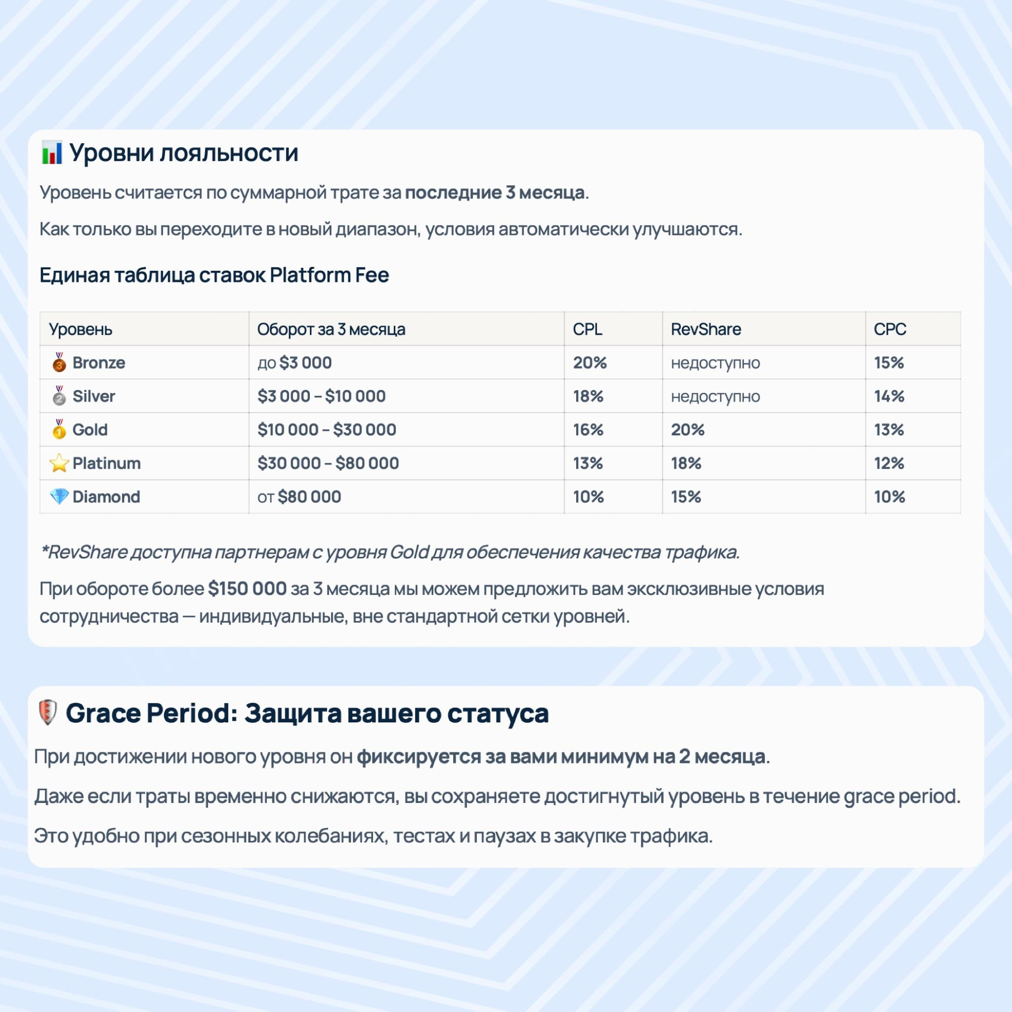 Также новым моделям сначала нужно закрыть несколько заказов по CPL, и только после этого они могут работать в формате RevShare — он доступен только от уровня Gold и выше.