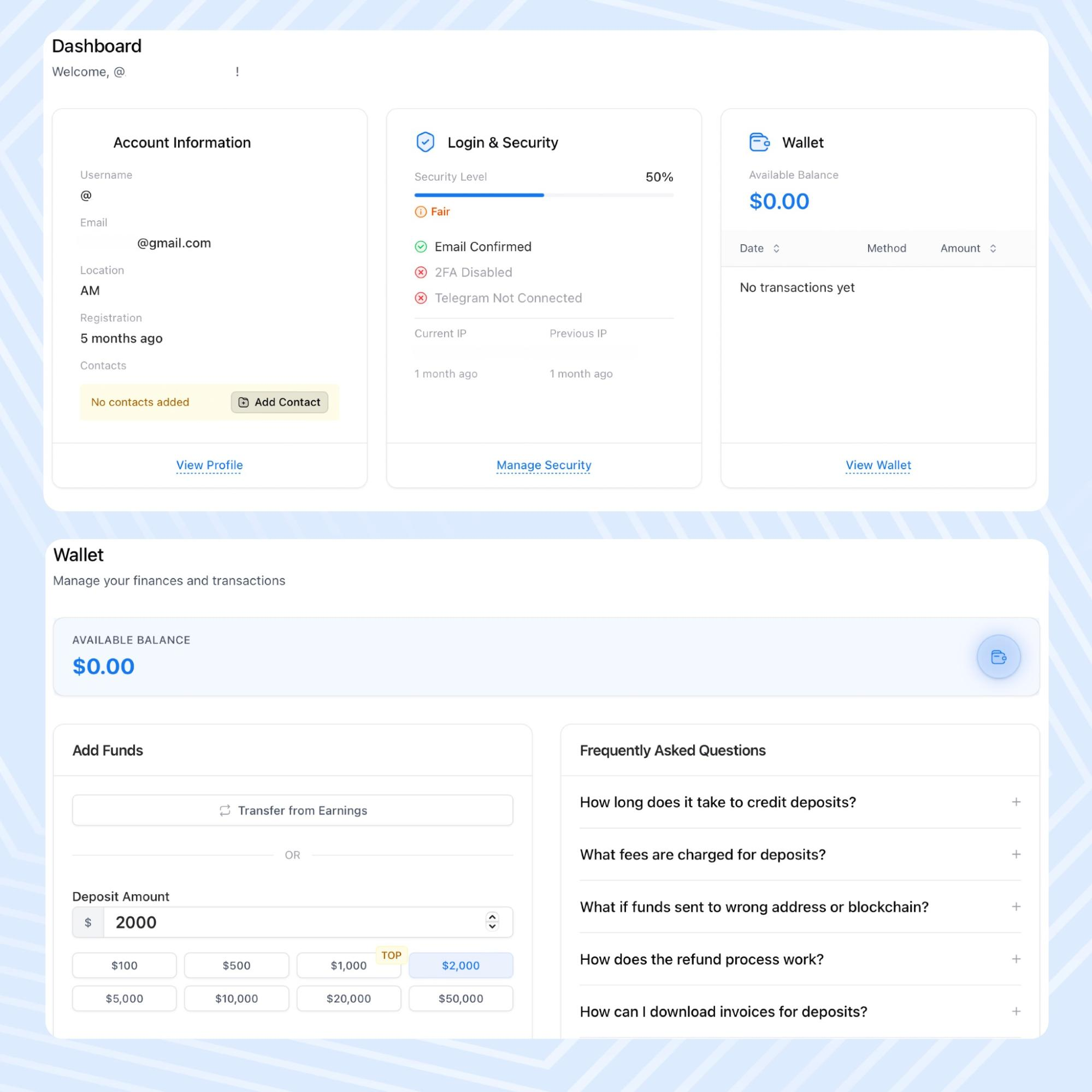 Раньше, чтобы попасть из кабинета клиента в кабинет маркетолога, нужно было отдельно авторизовываться в каждом. Мы сделали один общий аккаунт, где виден баланс, настройки безопасности и информация аккаунта.